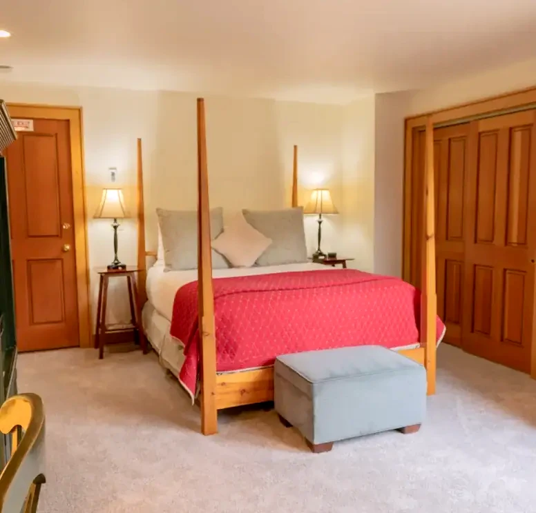There’s something deeply restful about falling asleep to the gentle murmur of Flat Creek and waking to watch swans glide past your window. These charming queen-bed rooms, tucked away on our second floor, offer the perfect blend of cozy comfort and natural beauty.